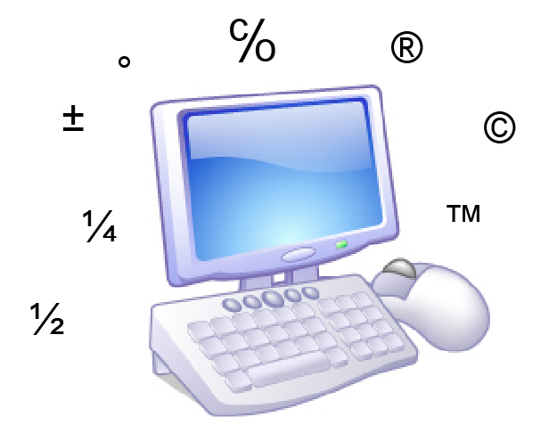 Using the Number Pad and ALT key provides hot-key access to hidden keyboard characters.